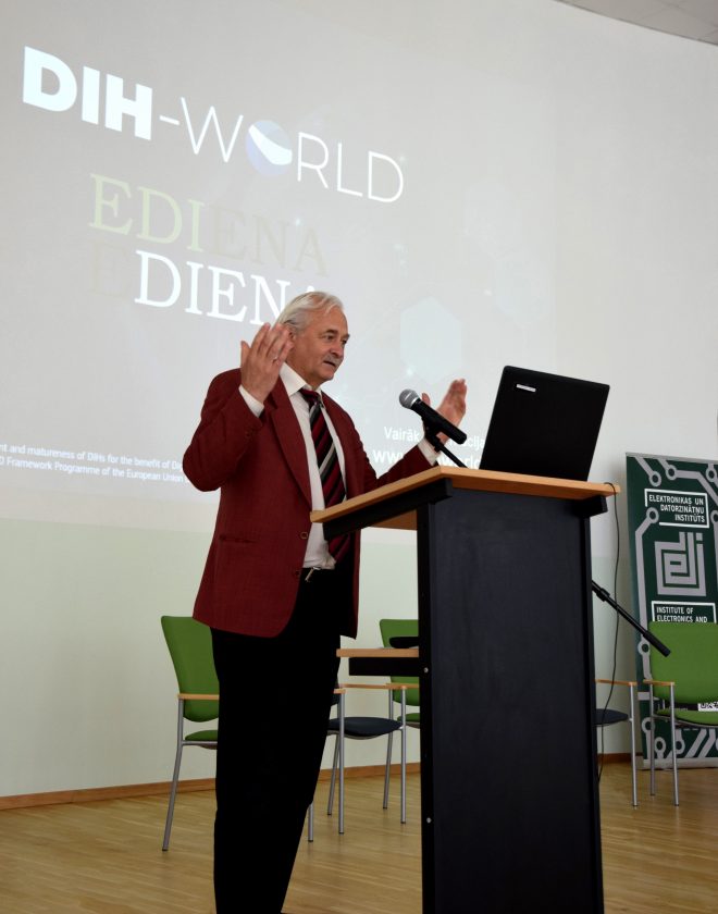 12:10 – 12:15 – Kas ir DIH-world projekts? un kā uzņēmumi var saņemt finansējumu procesu digitalizācijai (K.Ozols)