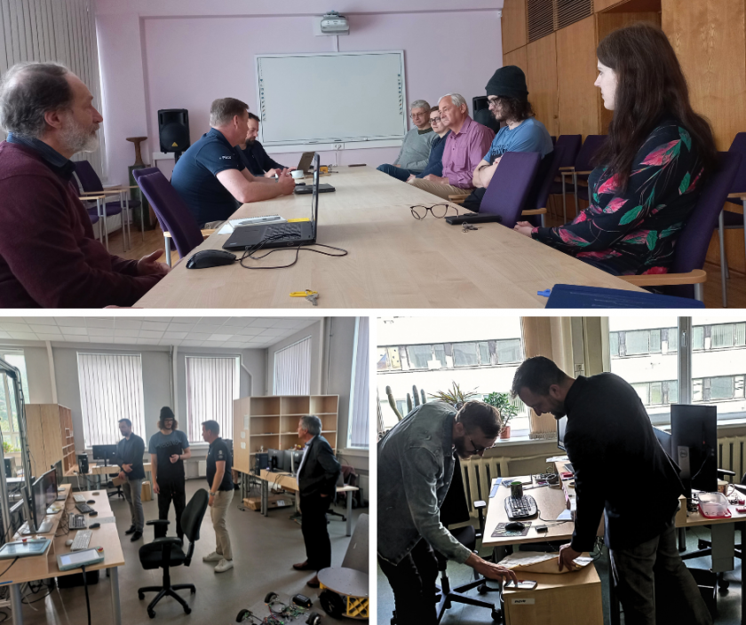Robotikas laboratorija demonstrēja EDI izstrādāto industriālās datorredzes sistēmu robotizētai objektu satveršanai, mobilo robotu prototipus, kustību uztveres aprīkojumu un tā izmantošanas iespējas, kā arī apkārtējās vides kartēšanas sistēmu. Norisinājās diskusijas par perspektīviem virzieniem tālākai sadarbībai – kartēšanas sistēmām uz kosmosam piemērotas elektronikas un autonomām multi-aģentu sistēmām.