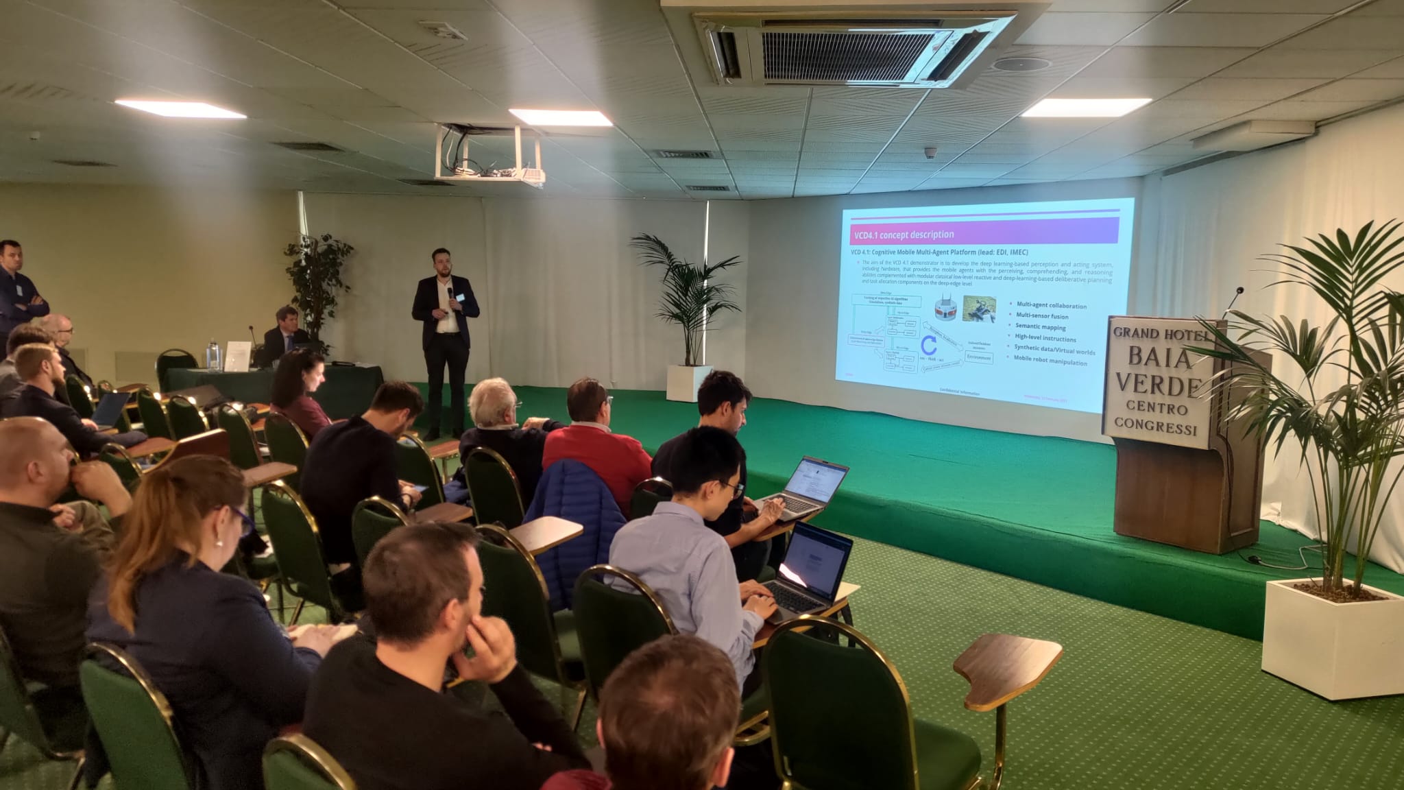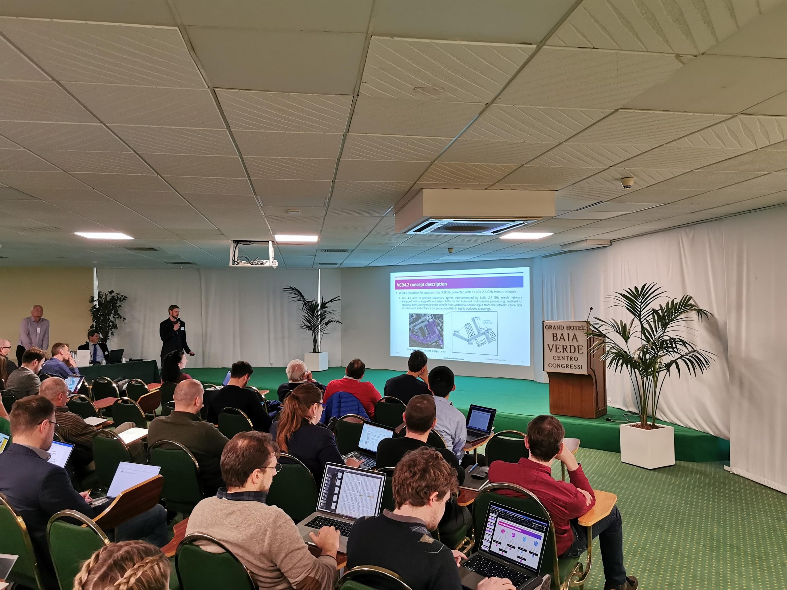 Robotics and machine perception laboratory, senior researcher Modris Greitans, researcher Janis Arents, and Cyber-Physical Systems laboratory researcher Janis Judvaitis are participating in Edge AI Technologies for Optimised Performance Embedded Processing (EdgeAI) kick-off meeting in Catania, Italy. During the event, the implementation of the project is discussed and planned, in which EDI leads the mobility value chain (VC4 mobility) and two demonstrators of this value chain, VCD4.1 – “Cognitive Mobile Multi-Agent Platform” and VCD4.2 – “Roadside Perception Units Connected with a LoRa 2.4 GHz Mesh Network”. On the first day of the event, M.Greitans presents the role of EDI in the project. On the second day of the event, M.Greitans presents the objectives and planned activities of VC4. J.Arents and J.Judvaitis present the aims, objectives, planned contributions of the partners and the next activities of the demonstrators VCD4.1 and VCD4.2. During the event, discussions are held with partners on effective cooperation in project implementation.