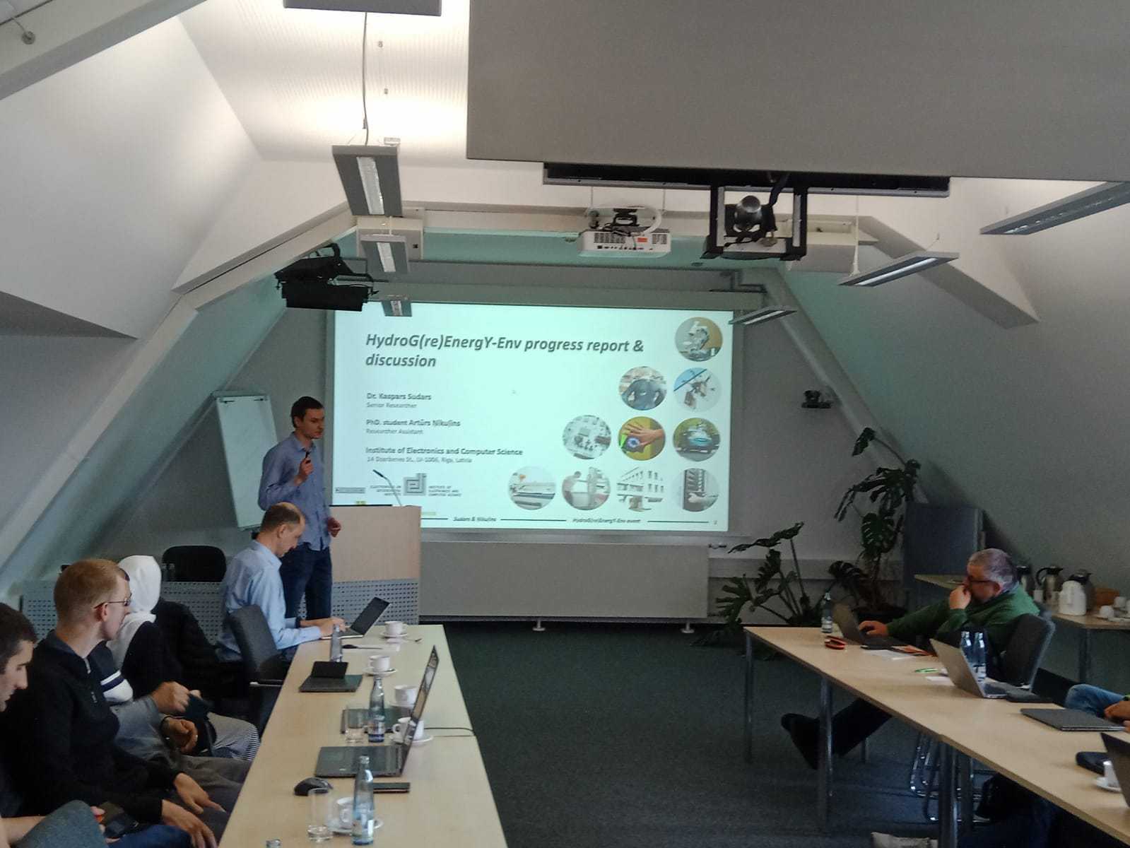 No 21.-22. septembrim Rumānijas “Valsts vides aizsardzības pētniecības un attīstības institūtā” (INCDPM) notika pirmā partneru tikšanās, saistībā ar HydroG(re)EnergY-Env projektu. Partneru valstis ir Rumānija, Latvija, Vācija, Spānija. EDI reprezentēja programmēšanas inženieris Artūrs Ņikuļins. Tika apspriesti tādi jautājumi kā katras puses loma projektā, nepieciešamo datu iegūšana un to analīze, kā arī sistēmas tehniskās izstrādes jautājumi. EDI loma projektā ir izstrādāt inovatīvu AI kontroles sistēmu norises procesu kontrolei. Rezultātā tiek paredzēta sistēma, kas nodrošinātu 100% zaļas enerģijas iegūšanu no ūdeņraža jaunākajām iegūšanas tehnoloģijām.